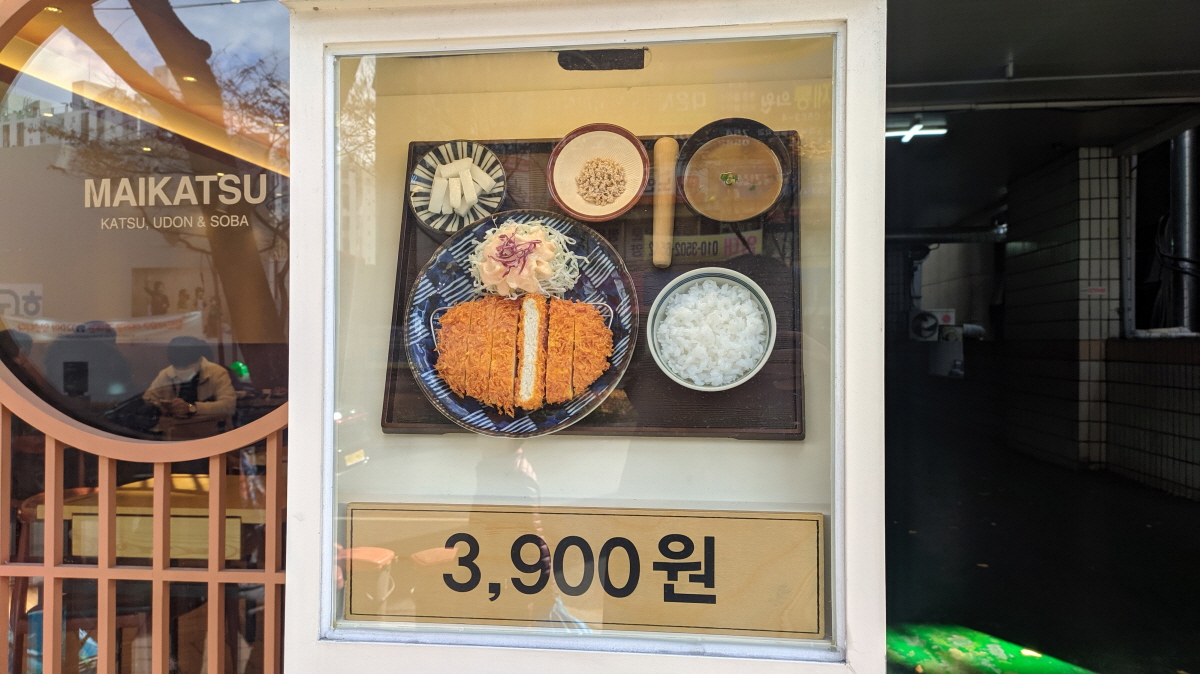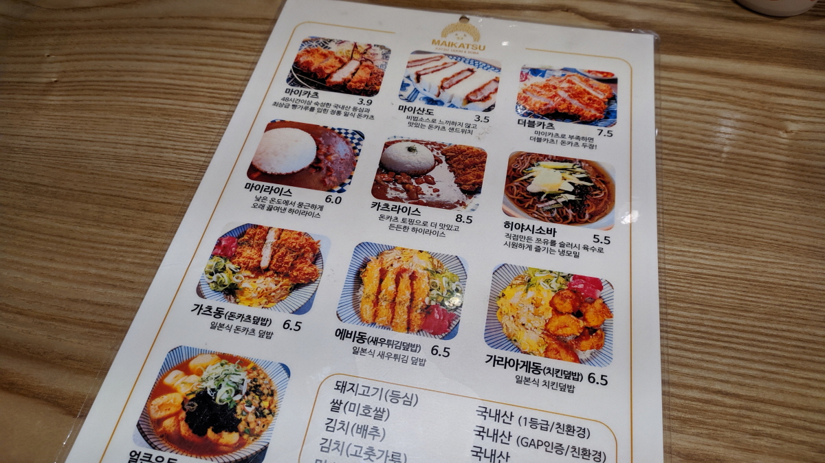마이 카츠 가격이 3900원, 나머진 메뉴도 지리적 위치를 생각하면 가격대가 아주 저렴한 편이다. 요즘은 어딜가더라도 기본 1만원은 잡아야 제대로된 음식을 맛볼 수 있으니...