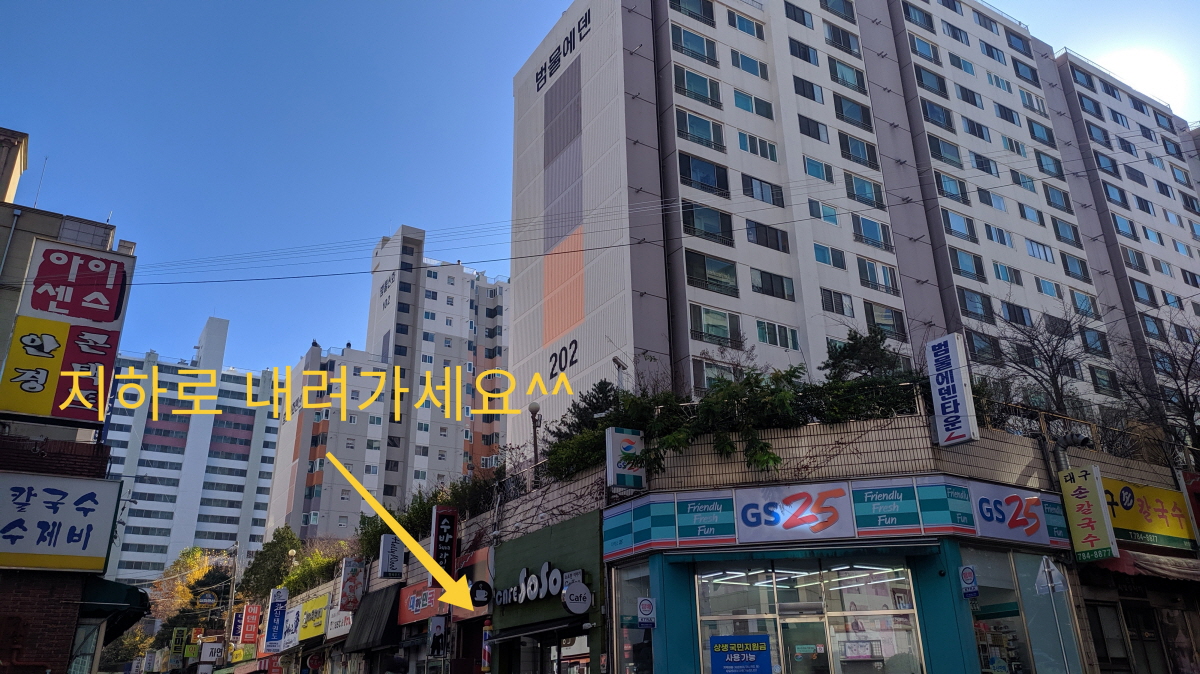 GS25 편의점을 기준으로 왼쪽으로 5m 올라가면 수바 라이브라는 간판이 보인다. 지하로 내려가는 계단으로 내려가면 에덴 실비 이용소를 만날 수 있다.