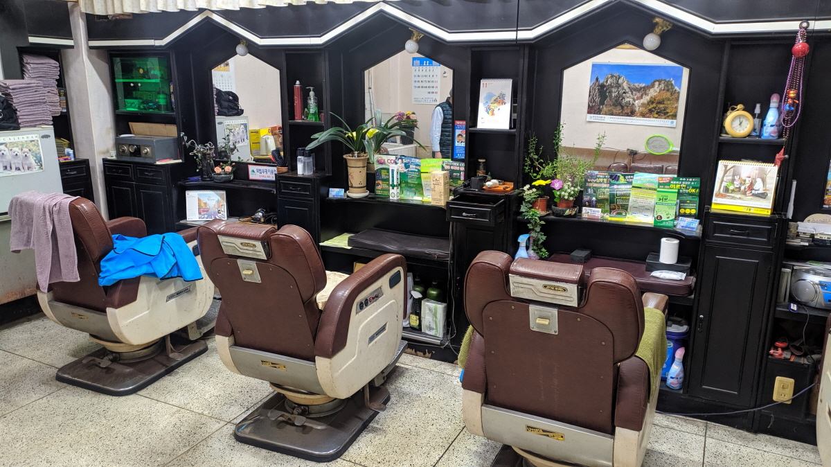 노년의 이발사(사장님)가 반갑게 인사를 건네주신다. 세월이 느껴지는 의자들과 인테리어 소품들, 어릴 때 아빠 따라 간 이발소 느낌 그대로이다.