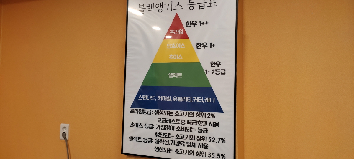 한우의 경우에도 등급이 있지만 사실 무의미하다고 한우 전문가가 말한 기억이 난다. 필자 역시 고기는 분위기가 중요하고 그다음 먹는 장소 그리고 굽는 방법에 따라 맛이 하늘과 땅 차이로 벌어지는 것 같다. 물론 더 좋은 등급의 고기를 가지고 잘 굽고 먹는다면 두 말할 가치가 없겠지만...