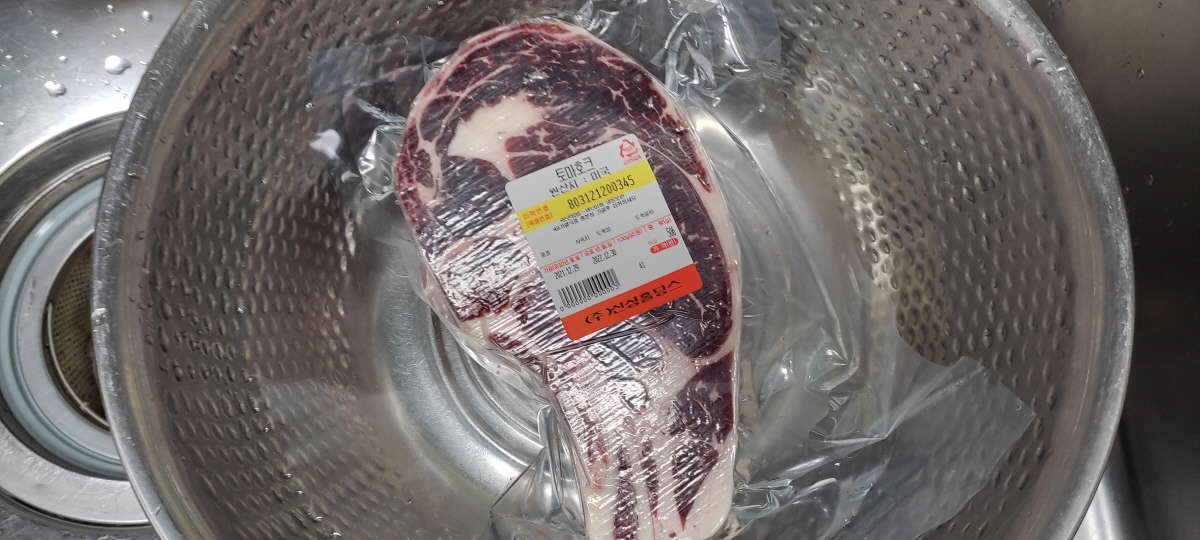 사장님이 알려주신 대로 물에 10~15분 해동을 해본다. 하지만 고기 해동에서 가장 바른 방법은 자연스럽게 공기 중에 해동하는 것이 좋다. 냉동고기 해동에 관한 자세한 방법은 아래의 글을 참고하면 좋겠다.