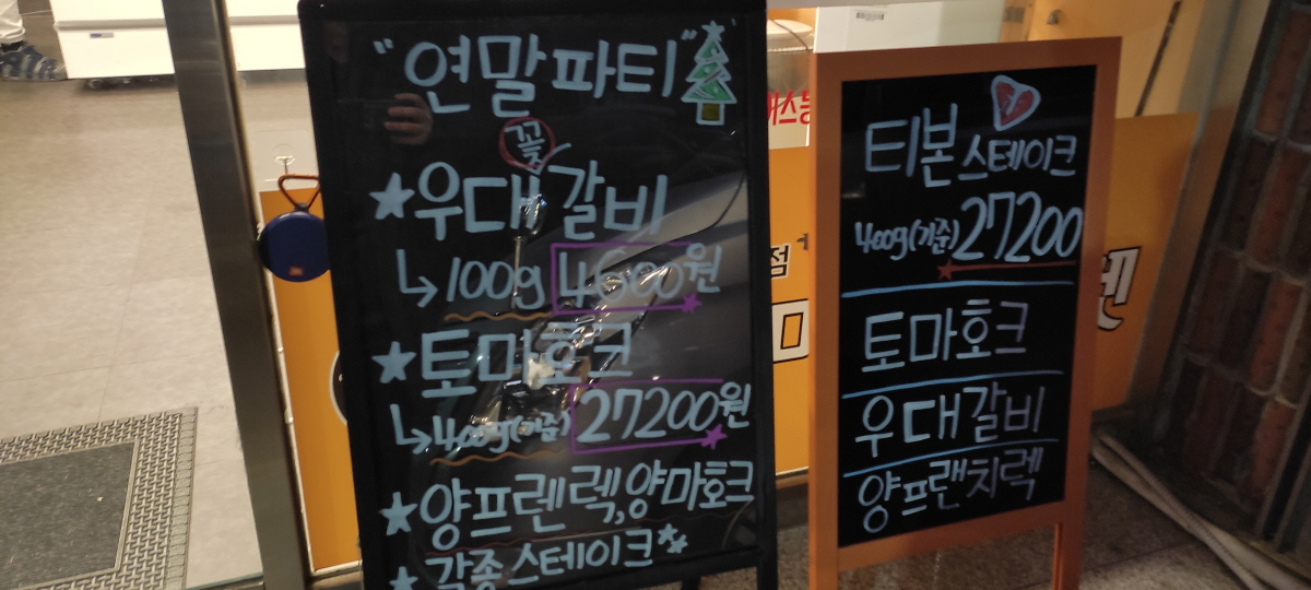 지난 2021년 크리스마스 전에 당근 X켓에 올라온 동네 소식지를 보았다. 등급이 좋은 수입산 소고기전문점 신성미트마켓광고였다. 연말을 지나 새해가 다가와 아이들과 함께 토마호크를 먹고자 방문해보았다.