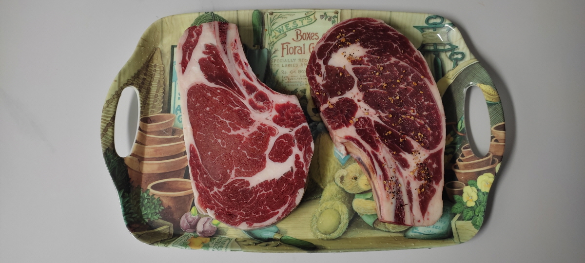 왼쪽은 해동만 한 토마호크, 오른쪽은 각종 마른 허브를 살짝 뿌린 토마호크이다.