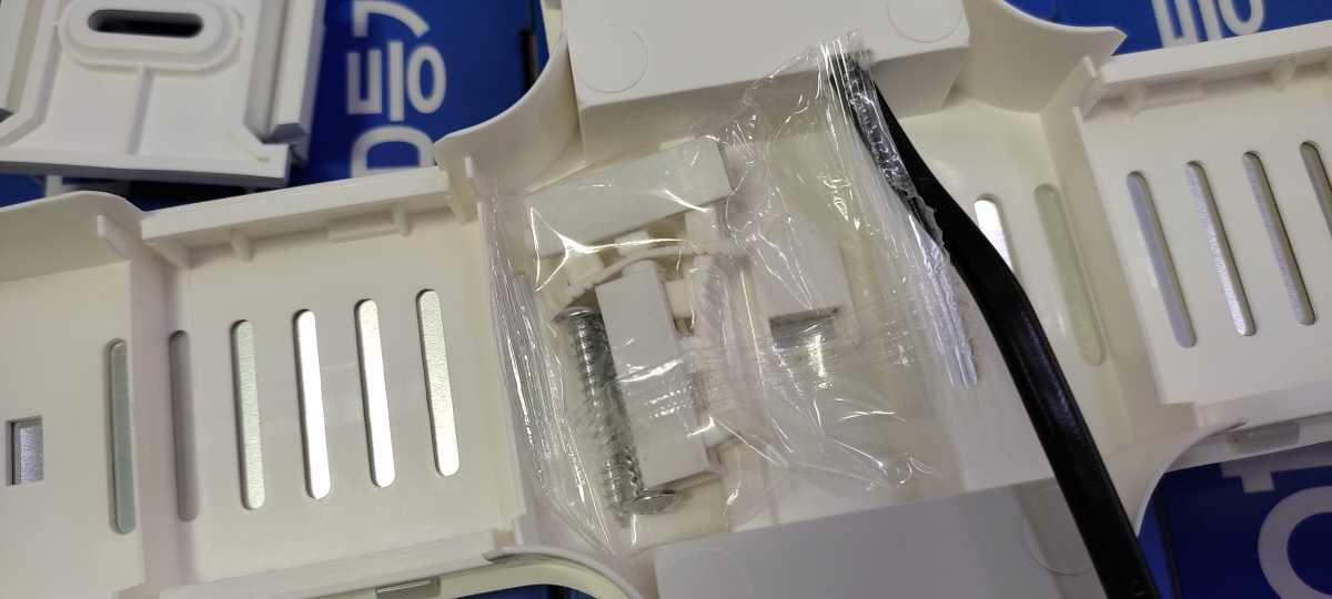 분리하면 안쪽에 말한 대로 설치용 나사와 전선 연결브라켓이 보일 겁니다. 잘 챙겨주세요.