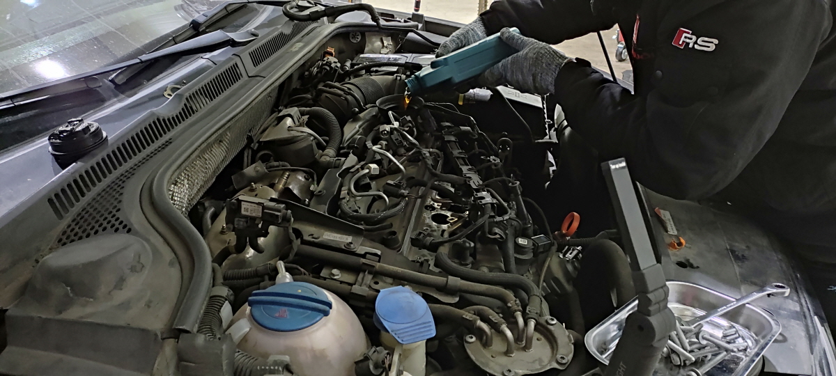 필자의 폭스바겐 뉴 제타를 입고하고 사장님은 휴게실로 올라가 있음 된다고 하시는데... 흡기 밸브 크리닝 작업이 궁금하기도 하고 내차의 흡기는 얼마나 오염이 되어있을지 눈으로 확인하고 싶기도 했다.