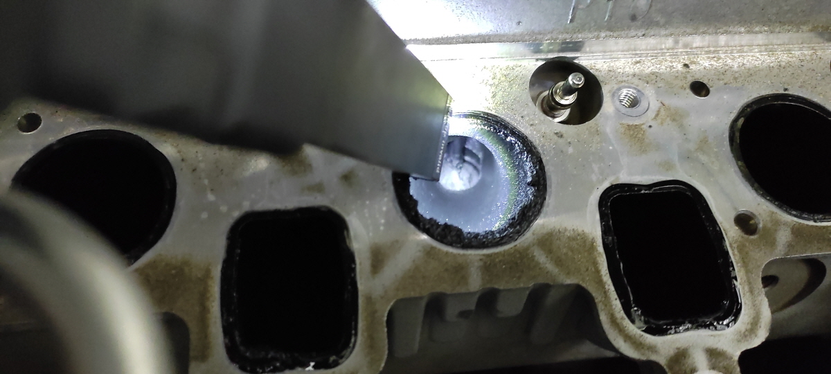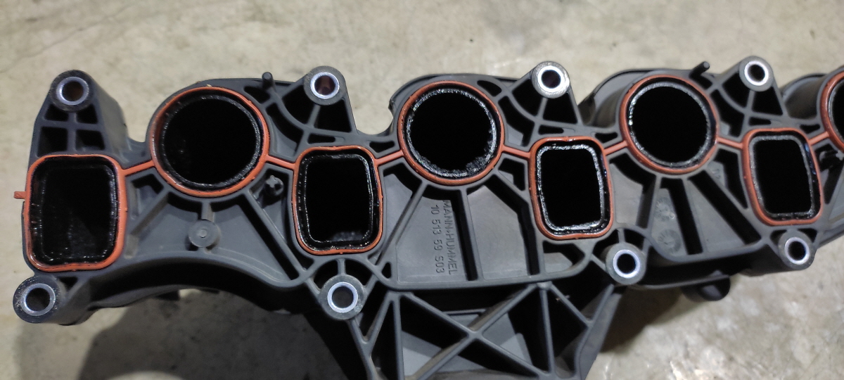 흡기 밸브 쪽 테두리에 검은 띠가 보인다. 이 부분이 공기의 흐름을 막고 차량의 악영향을 미친다고 한다.