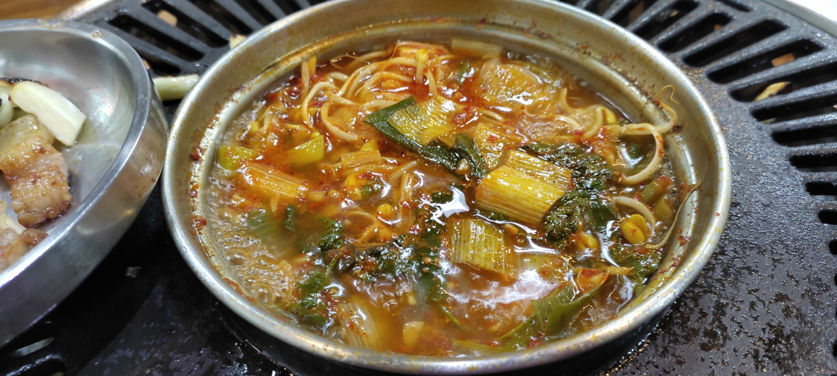 돼지찌개는 아니지만 찌개는 맞다! 삼겹살이 너무 맛나서 찌개의 맛은 지금도 기억이 나질 않는다.