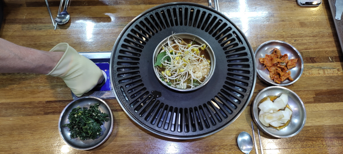점심시간이라... 시간적 여유를 가질 수가 없다. 화력을 올려 급하게 복성 녹돈 삼겹살을 구워본다. 사장님 역시 점심시간에 삼겹살을 판매해 보긴 처음은 아니지만 자주 있는 일이 아니라 부수적인 재료들 준비하신다고 바쁘다.