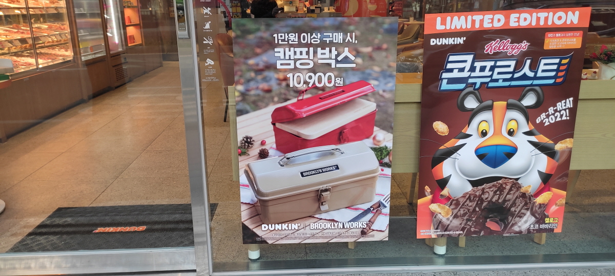 보성녹돈 돼지찌개전문점으로 가면서 인근에 있는 던킨도너츠 굿즈 포스트를 보았는데... 너무 가지고 싶은 캠핑 박스라 탐냈지만 순간 품절로 다음기회? 노려보기로 한다. 캠핑박스 안쪽에 나무 도마까지 있는데 10,900원이면 아주 저렴하다 생각된다.