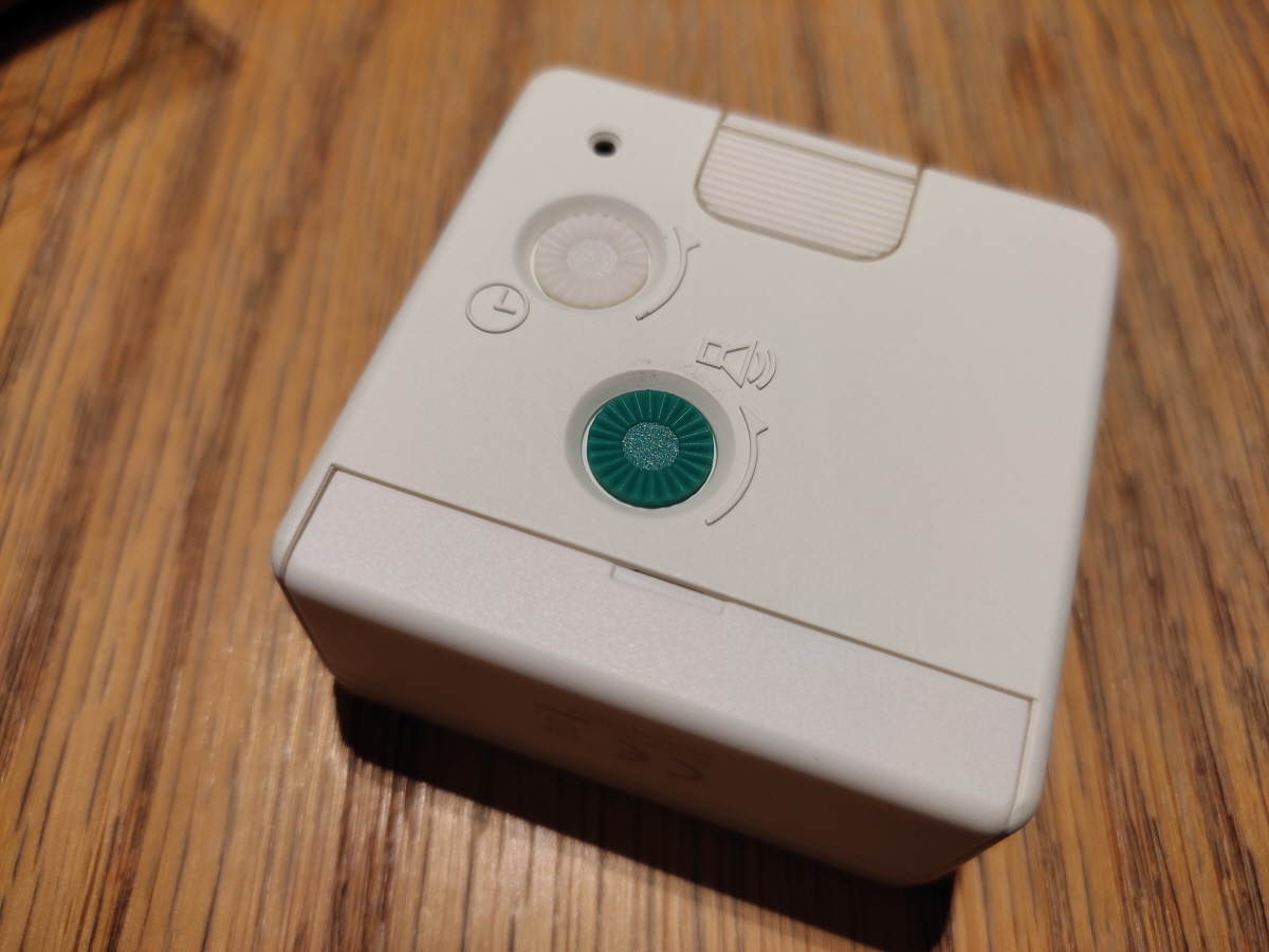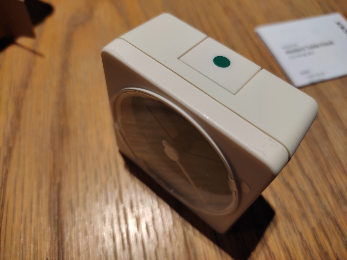 시계 상단에 작은 녹색 원이 보인다. 올리면 알람 ON이 되고 사진처럼 눌러주면 OFF가 된다. 알람 소리는 시계가 작다고 무시하면 안 된다. 생각보다 알람 소리가 우렁차다.