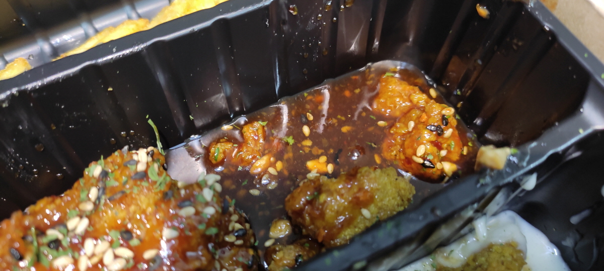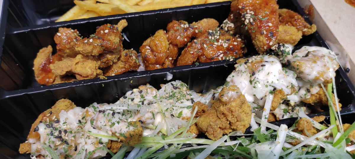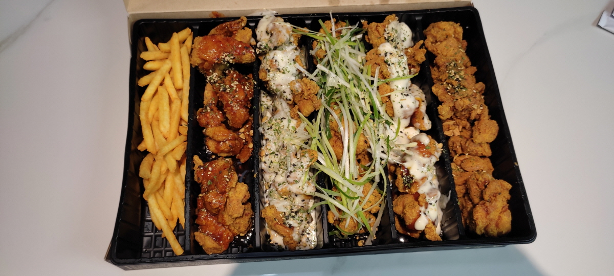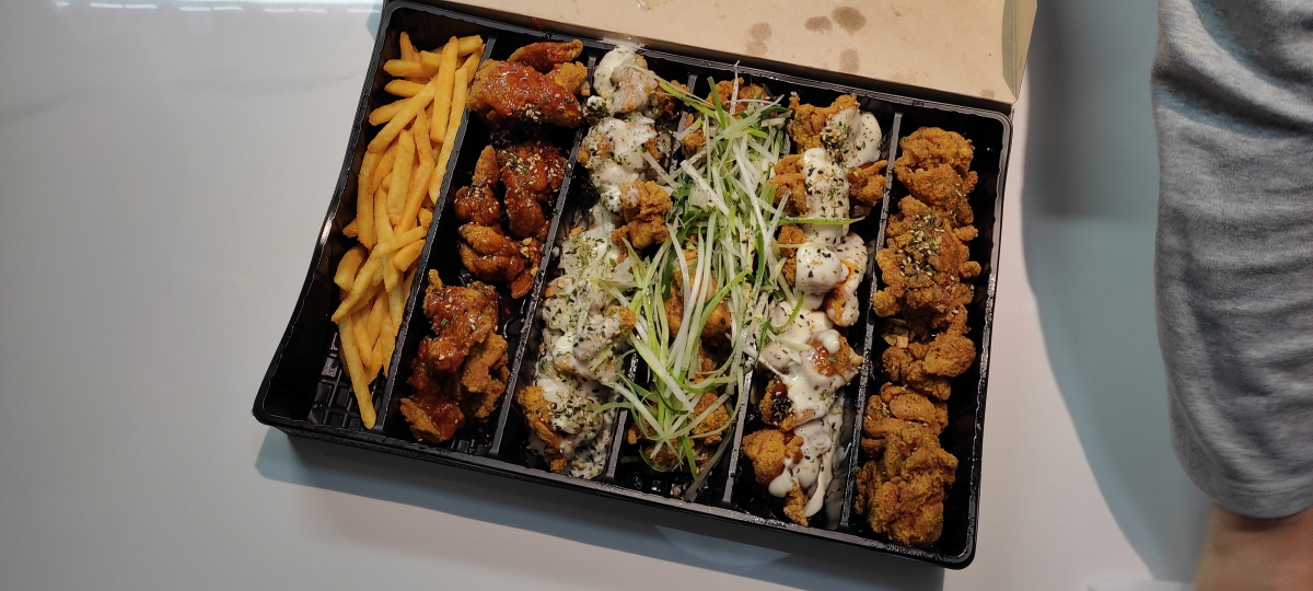 총 5줄의 순살 닭고기와 각기 다른 소스들... 그리고 한 줄의 감자튀김까지... 맥주 안주로는 더 이상의 치킨이 대적할 수 없을듯하다.