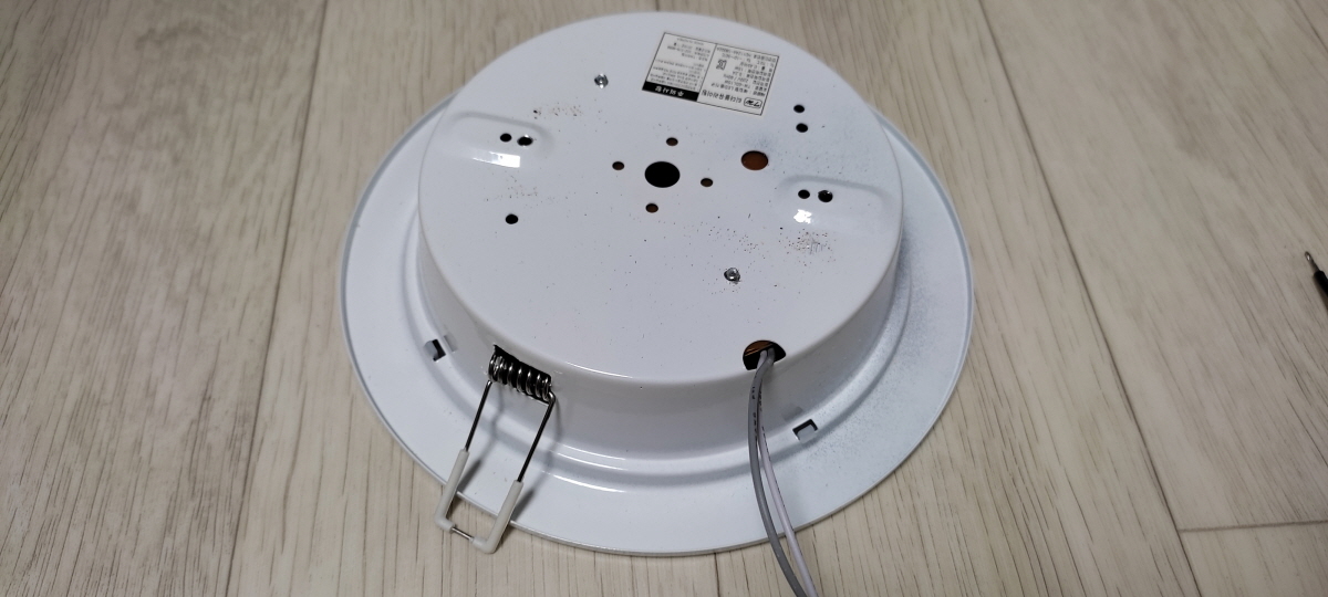다시 led매립등을 천장에 매립하면 되는데... 매립 시에는 양쪽 고정 스프링을 천장으로 올려주면서 체결하면 쉽게 매립이 가능하다.