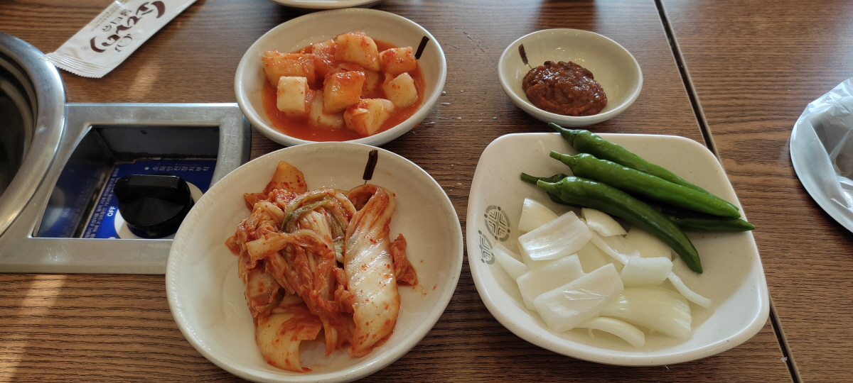 아주 평범하고 일반적인 반찬들이다. 고추는 청량고추이다. 맵기가 장난 아니었다.