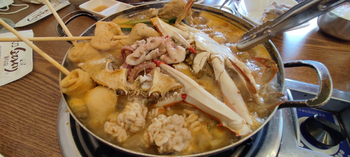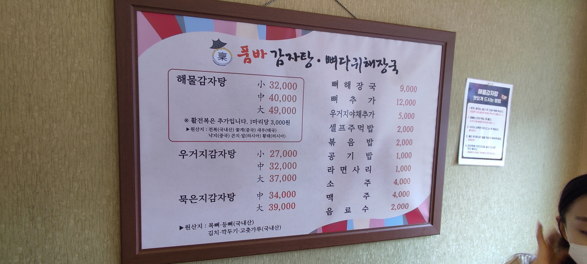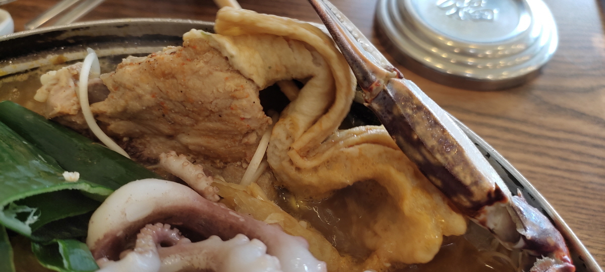 오늘 우리 가족이 품바 감자탕집에서 먹어볼 음식은 해물감자탕이다.