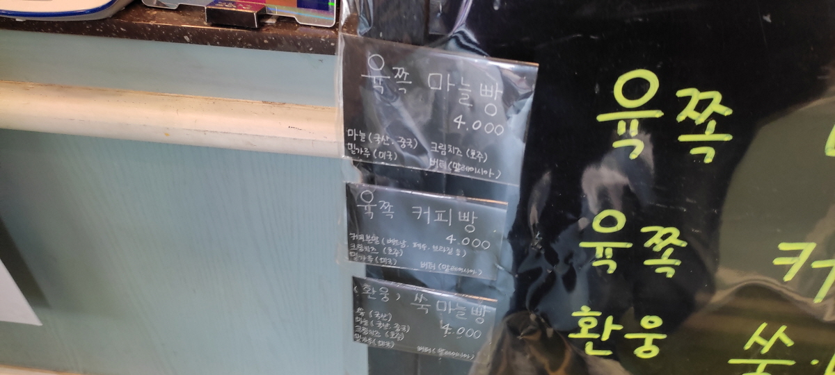 육쪽 마늘빵, 쑥 마늘빵, 육쪽 커피빵이 유명하기에 꼼꼼하게 읽어본다.