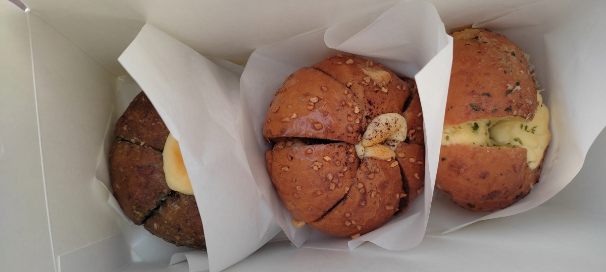 하지만 나머지 두개의 빵은 구워낸 시간이 있어 그런지 육쪽 마늘빵과는 확연하게 맛이 갈라진다. 그래서 빵이 나오는 시간에 맞게 방문하면 좋겠다는 이야기이다.