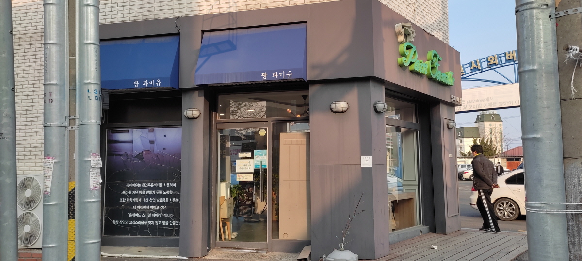 주문진 시외버스 종합터미널 바로 앞에 마늘빵으로 유명한 팡파미유 빵집이 있다.