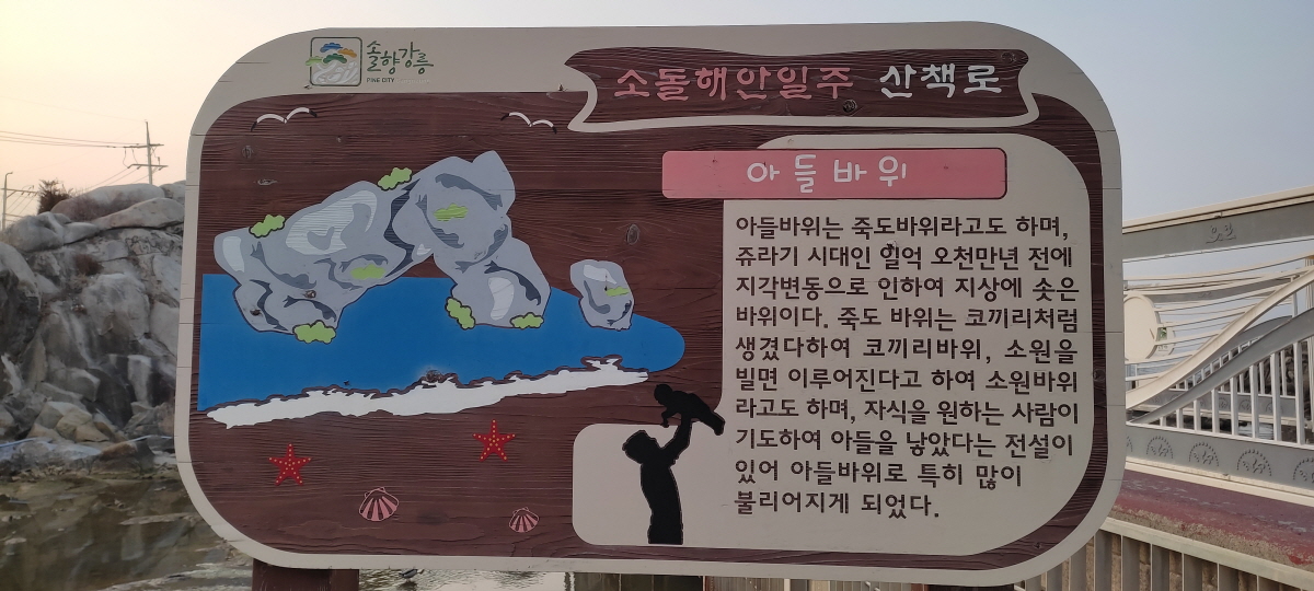 강릉 아들바위에서 바라보는 동해 바다의 모습은 정말 압권이며 꼭~ 소돌 해안산책로를 이용해 보길 바란다. 물론 바다전망대는 필수이다.