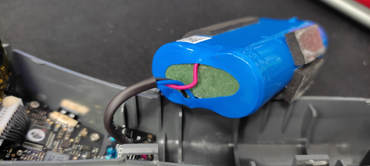 배터리 충전을 방지하기 위해 많은 스펀지 스티커가 배터리에 달려있다.