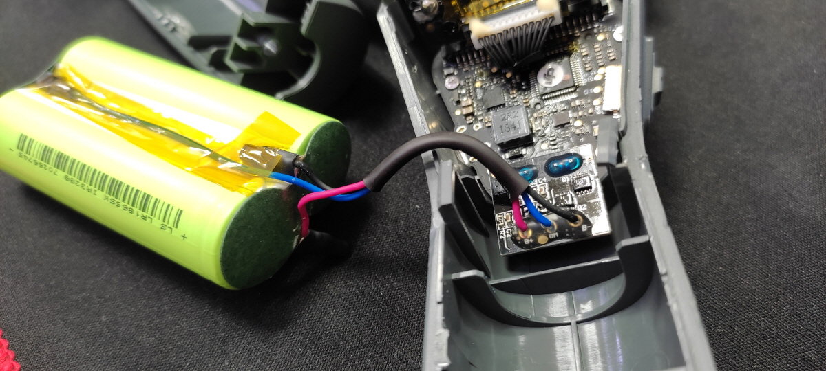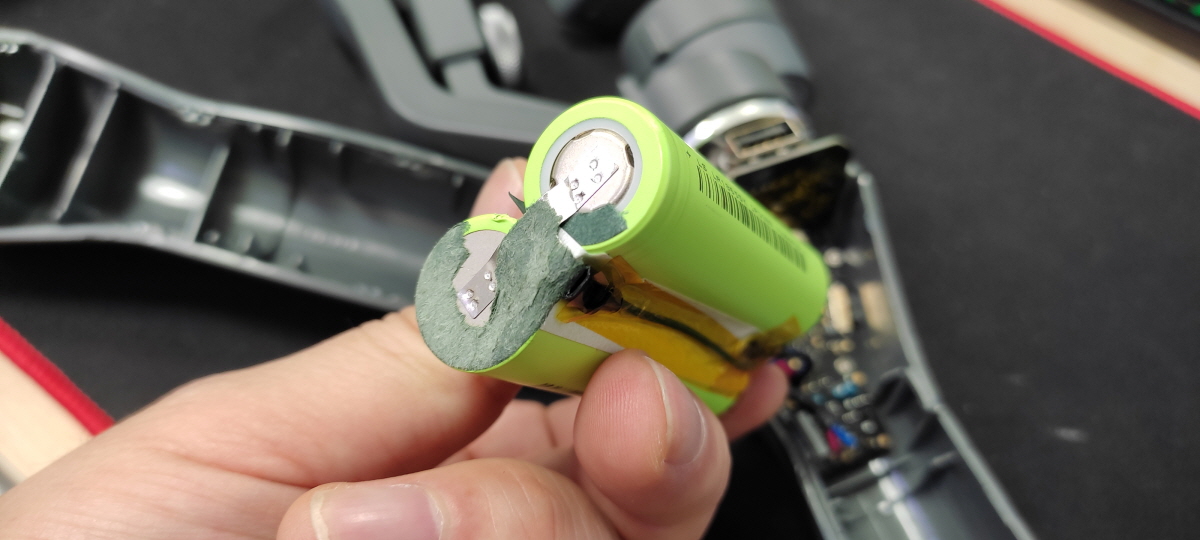 배터리를 원래 달려있는 접속 방법대로 납땜 후 역순으로 오즈모 모바일 2 재조립을 하면 된다. 아쉽게도 재조립 후 사진을 찍어두지 못했다. 하지만 오즈모 모바일 2는 정상적으로 잘 작동이 되었다. 그리고 가능한 분리 시 짐벌의 축도 확인해 두면 좋겠다.