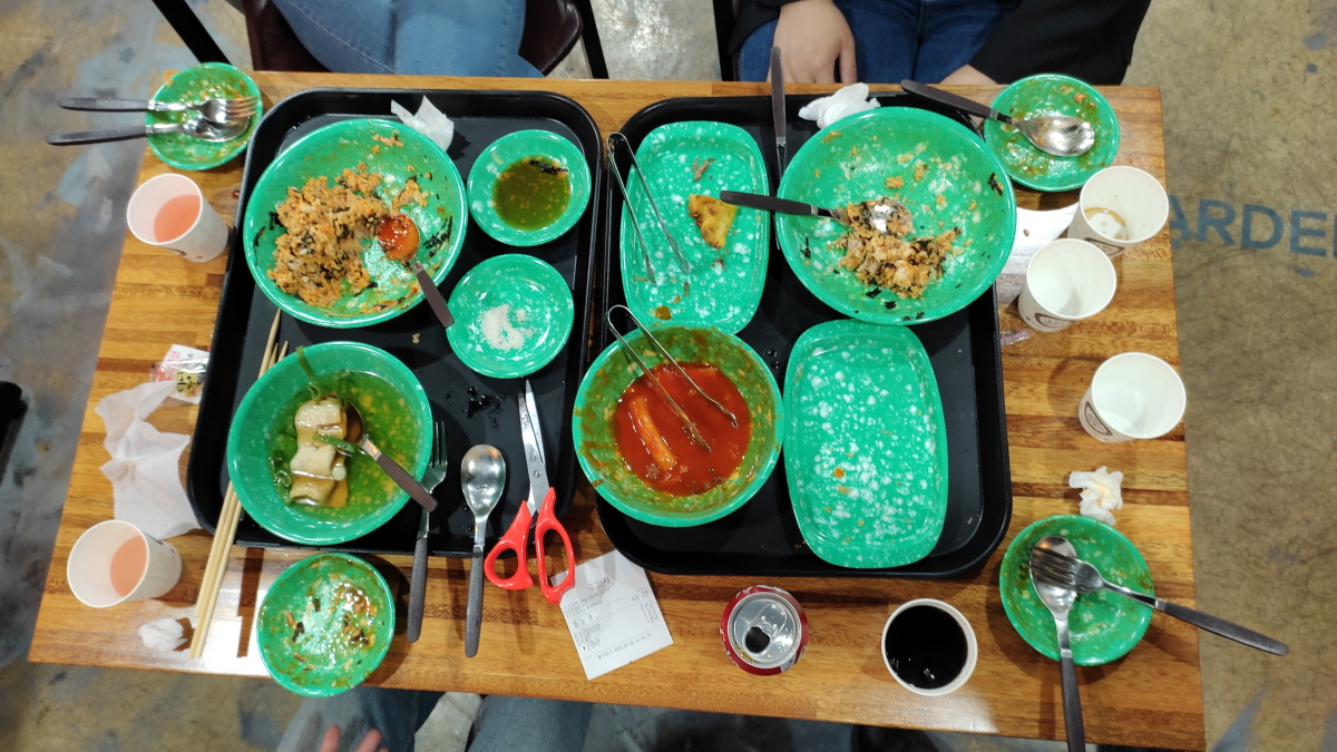 깔끔하게 비우고 싶었지만 특히 참치국물비빔밥은 양이 많아 남겨버렸다.