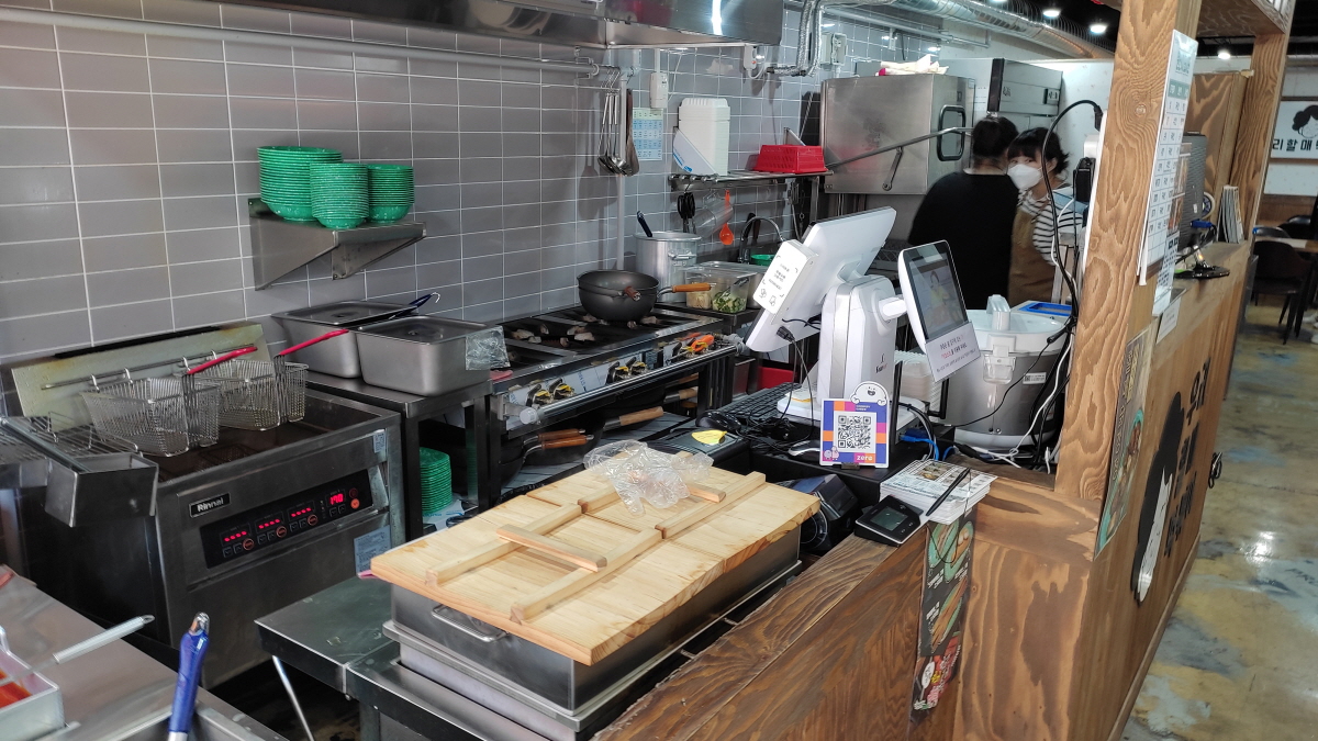 주방은 가게로 들어가기 위해 무조건 지나야 하는 구조로 인테리어가 되어 있다.