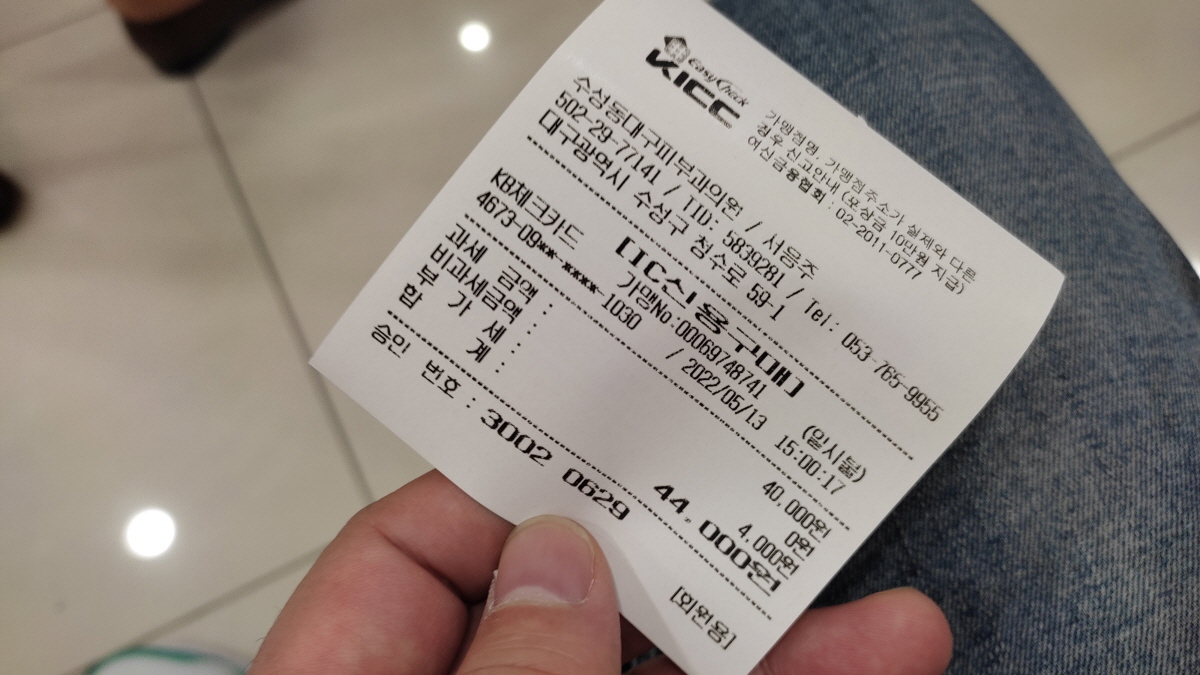 5개 점 빼기 요금은 총 44,000원이 나왔다. 개당 8,800원 정도 되네요. 회사 동료랑 잠깐 채팅을 했는데 수성구 아닌 다른 동네에선 점 개당 5천 원주고 시술했다고 하네요.