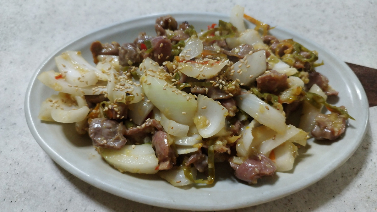 양파와 함께 닭똥집을 먹어보라 그리고 무조건 따뜻할 때 급하게 먹어라~