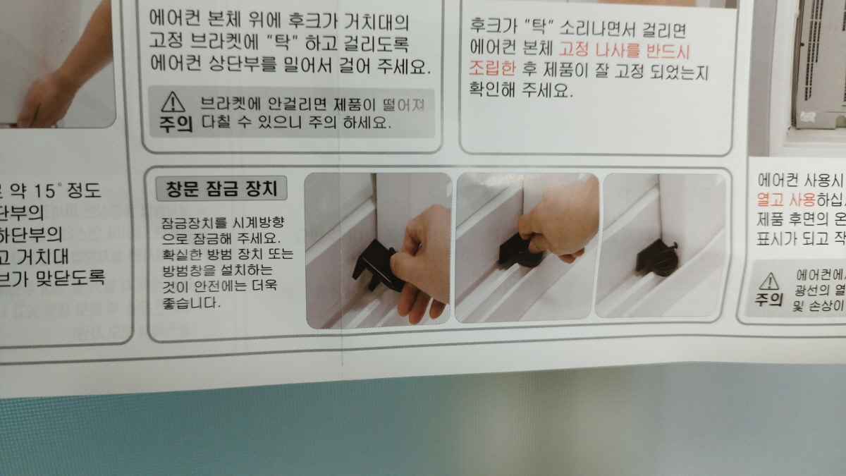 셀프 설치까지 소요된 시간은 약 1시간이면 충분히 남자 혼자 설치가 가능하고 설치 전 창문 위치를 보면서 왼쪽, 오른쪽 잘 선택 후 설치하는 것이 좋습니다. 그리고 전기 콘센트 길이까지 체크하시고 설치를 하셔야 설치 후 연장 콘센트가 불필요합니다.