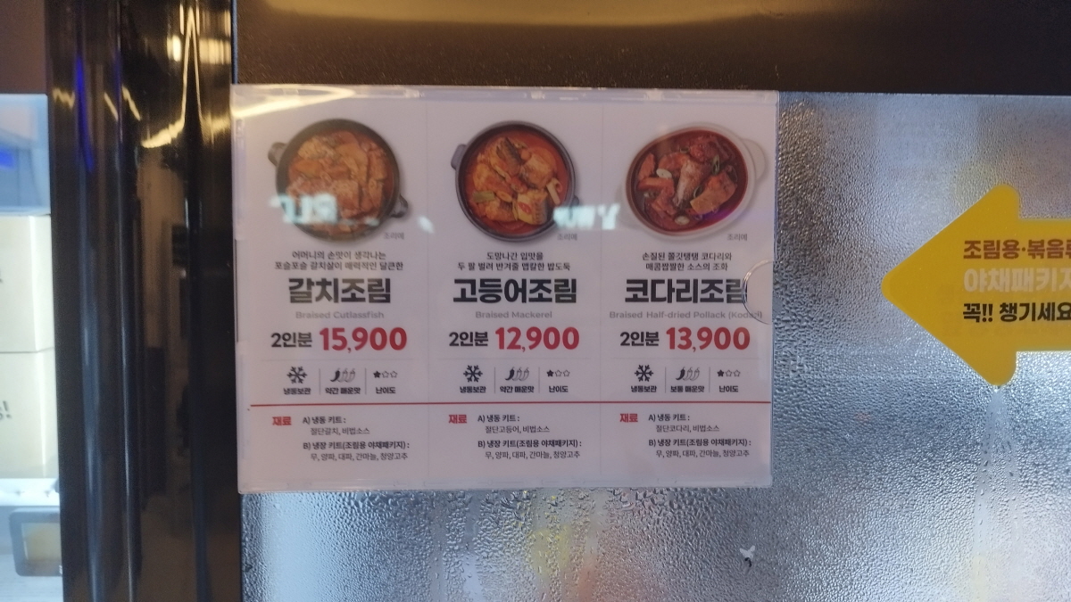 그리고 조림 밀키트는 따로 구분되어 있어 원하는 메뉴를 비교하면서 읽어보고 구입이 가능하게 마련되어 있어 좋았다.