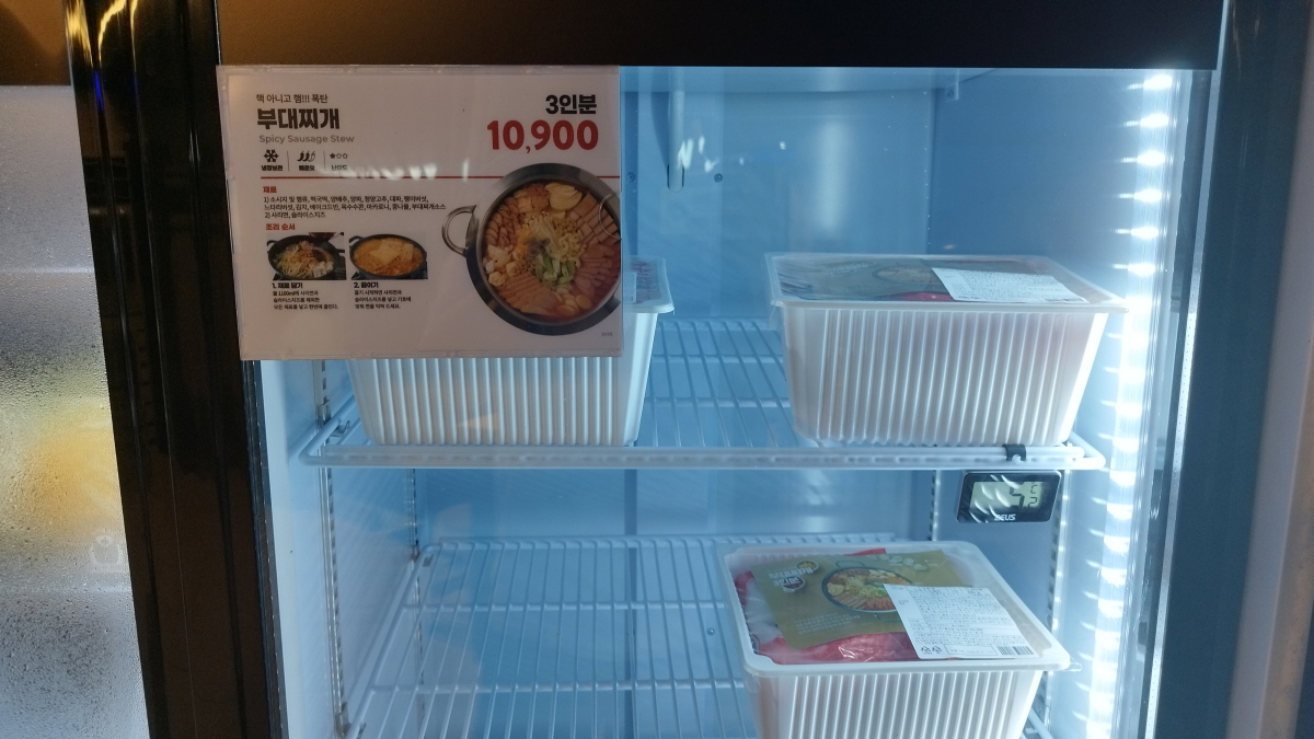 그리고 다른 냉장고에는 묵은지 김치찜이 보인다. 역시 김치찜이 들어있는 냉장고 전면에는 재료와 조리순서까지 자세하게 안내되어 있다.