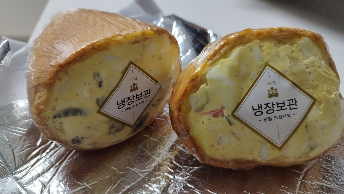 공룡알 빵은 냉장보관이라는 스티커가 달려있고 당일 먹으라고 한다.