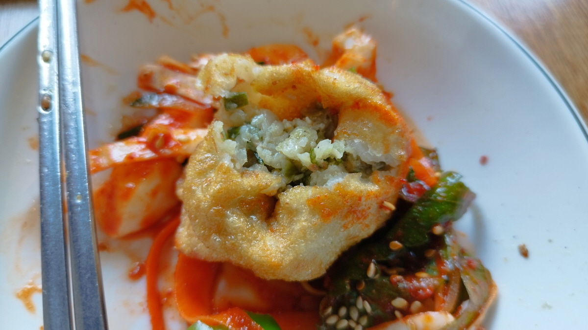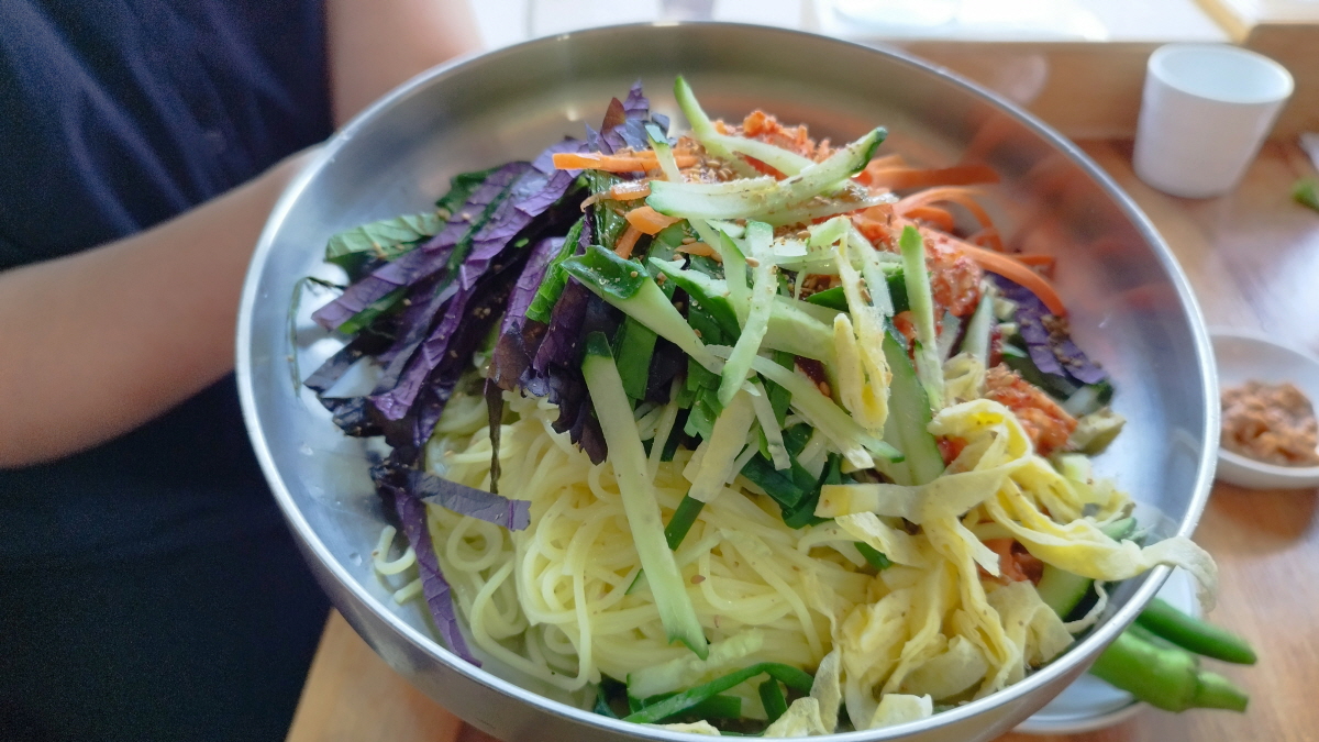 결론부터 말하자면 이 메뉴로 주문한 동료는 3/5을 남겼다. 비빔국수에 핵심은 새콤달콤한 비빔소스에 있다고 생각하는데... 약간의 맛을 본 필자 또한 비빔소스와 국수의 조합이 전혀 느낄 수 없는 맛을 보이는 비빔국수이다.