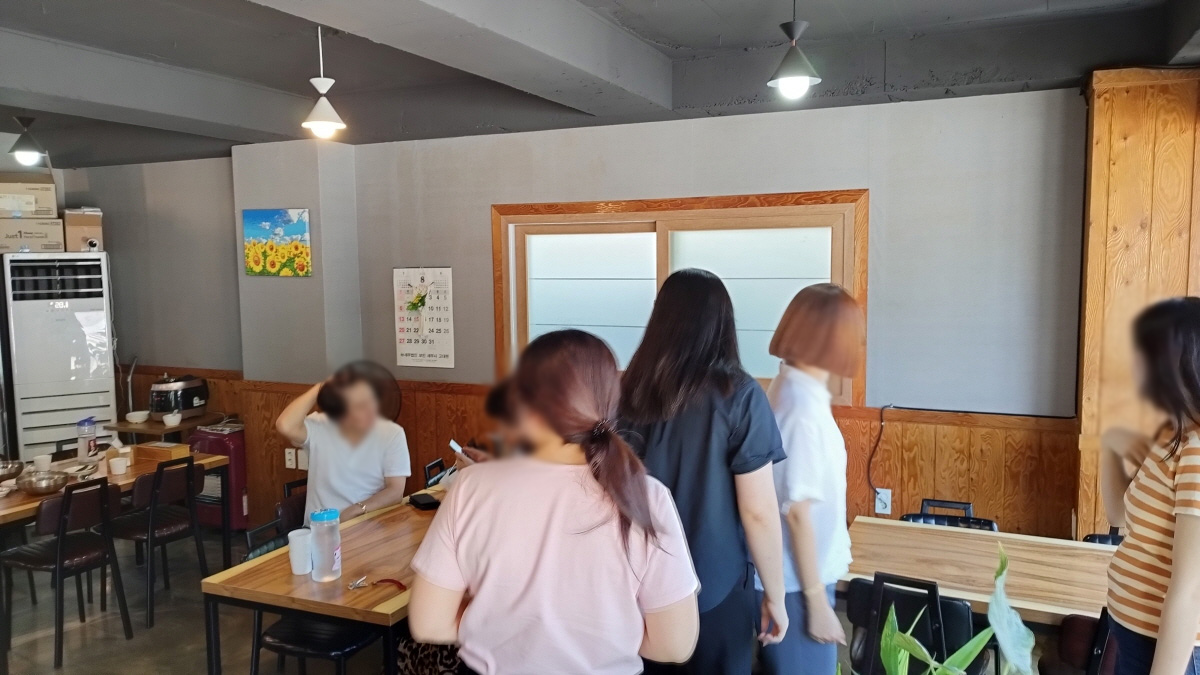 총 5명 방문이라 자리 잡기가 어중간해 보인다. 남자는 필자뿐이니 따로 4인테이블 센터로 의자를 만들어 본다.