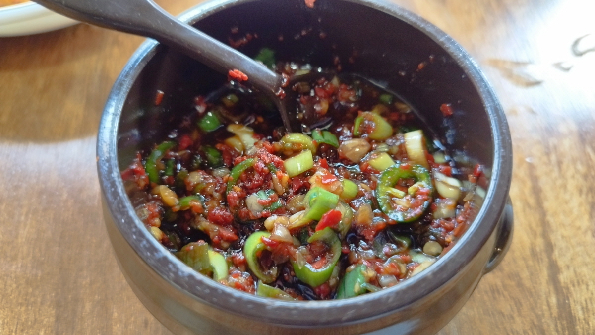 아주 신선해 보이며 미리 접시에 담아둔 상태는 아닌 걸로 보인다. 아쉽게도 맛은 아주 짜면서 매콤함이 떨어진다. 잔치국수와 함께 먹더라도 짠맛이 사라질 그런 맛은 아니다. 개인적으로는 깍두기를 추천한다.