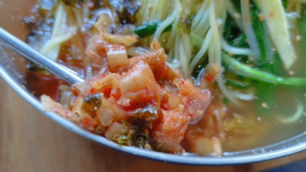 세팅된 김치들을 보니 생각보다 퀄리티가 좋아 보인다. 그리고 겉보기에는 중국산이 아닌 직접 담근 김치 비주얼로 보인다. 그럼~ 국수맛을 업그레이드해 줄 김치부터 맛보기로 한다.