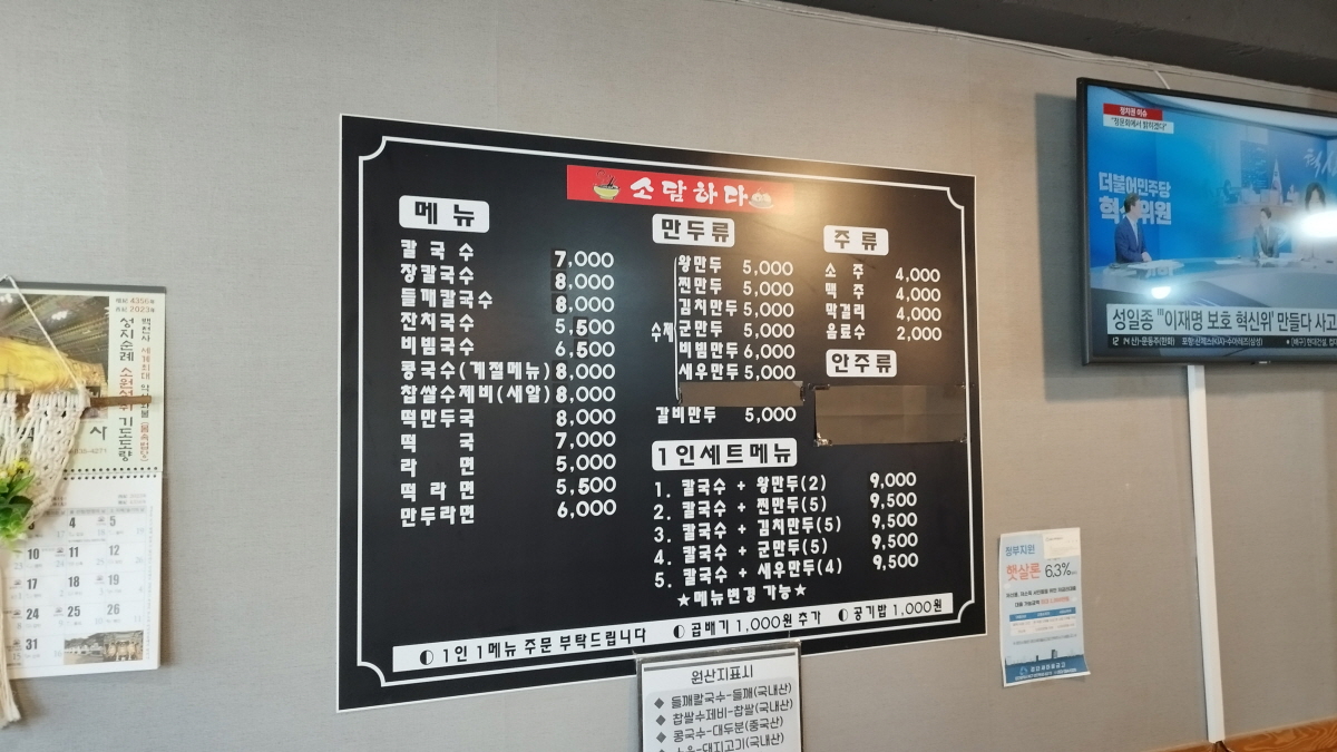 소담하다 식당은 칼국수와 손만두 전문점이라고 한다.