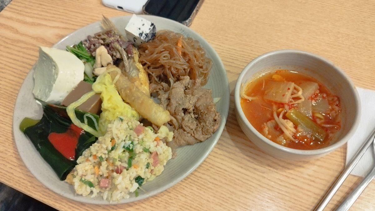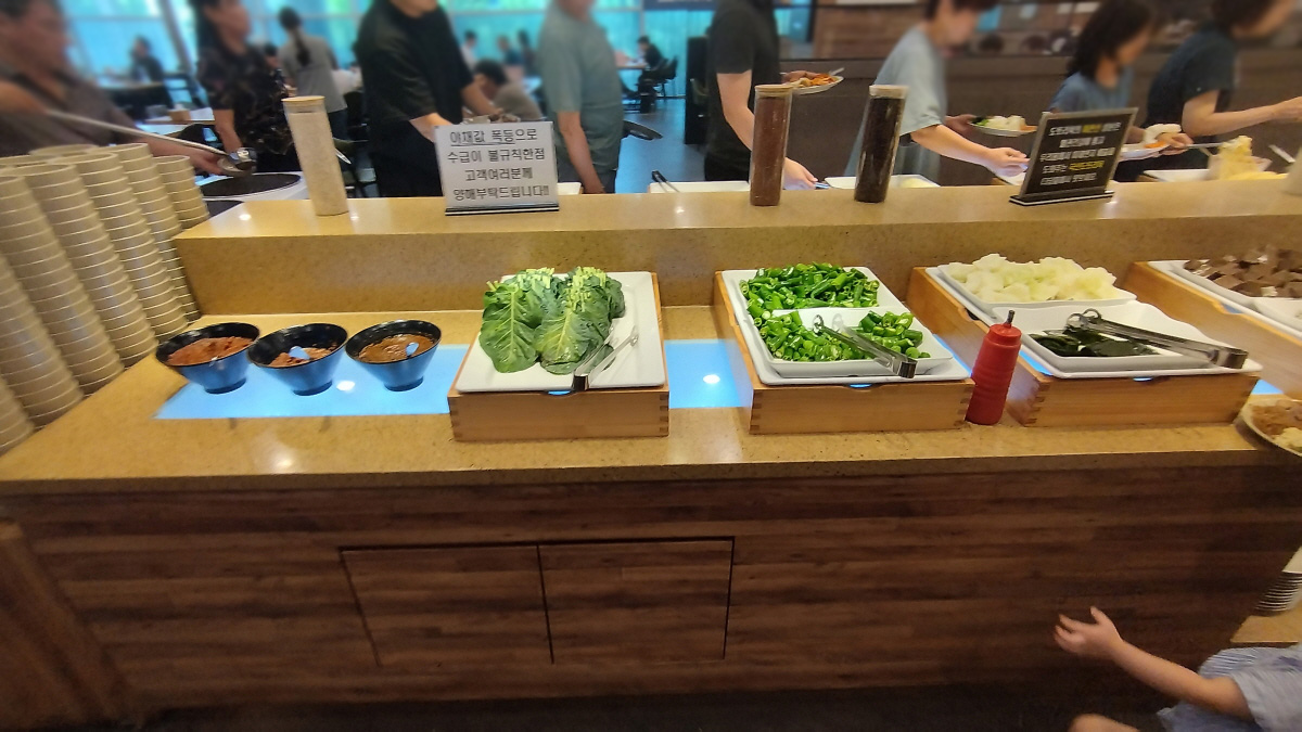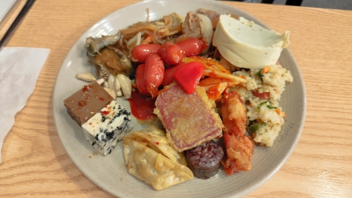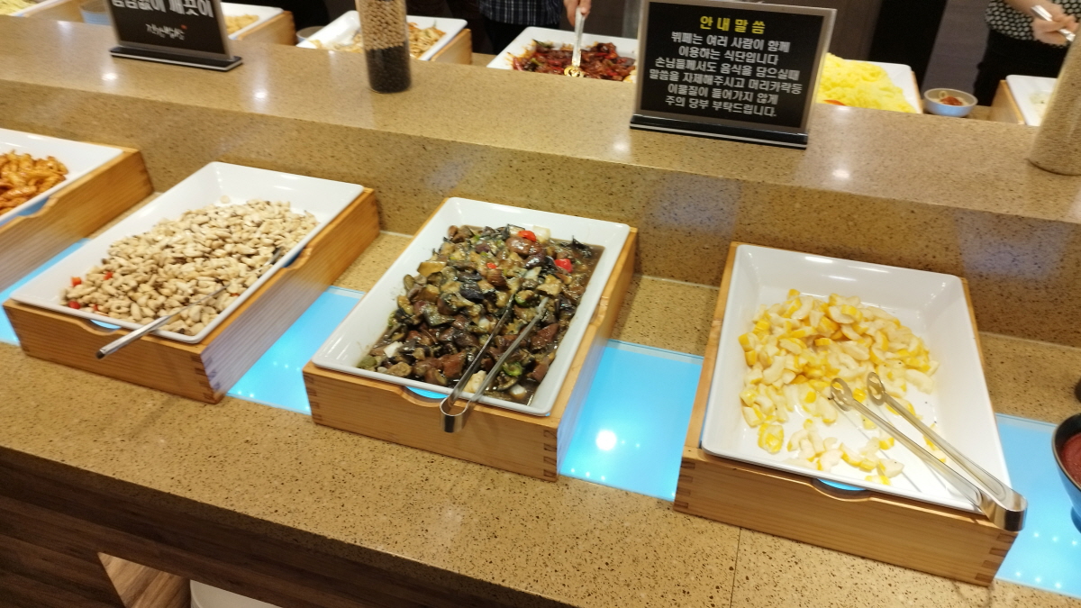 한식뷔페라는 이름에 걸맞게 잡채, 불고기, 비빔밥등 우리 입맛에 잘 맞는 음식들이 준비되어 있다. 그리고 치킨, 순대까지 준비되어 있다.