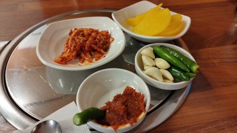셀프로 구성할 수 있는 반찬들, 메인 메뉴가 나오기 전까지 한잔 마시면서 안주 대용으로...