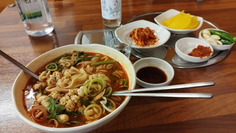혼술로도 먹기 좋은 제주 알곤칼국수, 국물 한입에 소주생각이 바로 나서 오늘도 한잔이다.