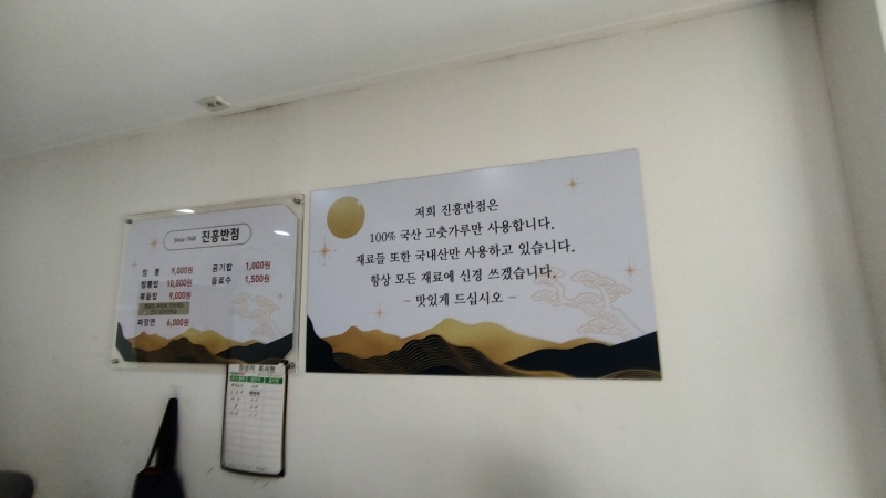 3. 진흥반점 메뉴판