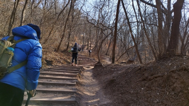 사실 이 정도의 오르막길은 누구나 편하게 등반이 가능한 산책로라고 생각할 겁니다. 앞산공원 산책로에 비하면 꿀일 겁니다.