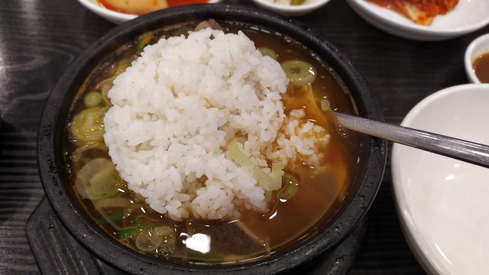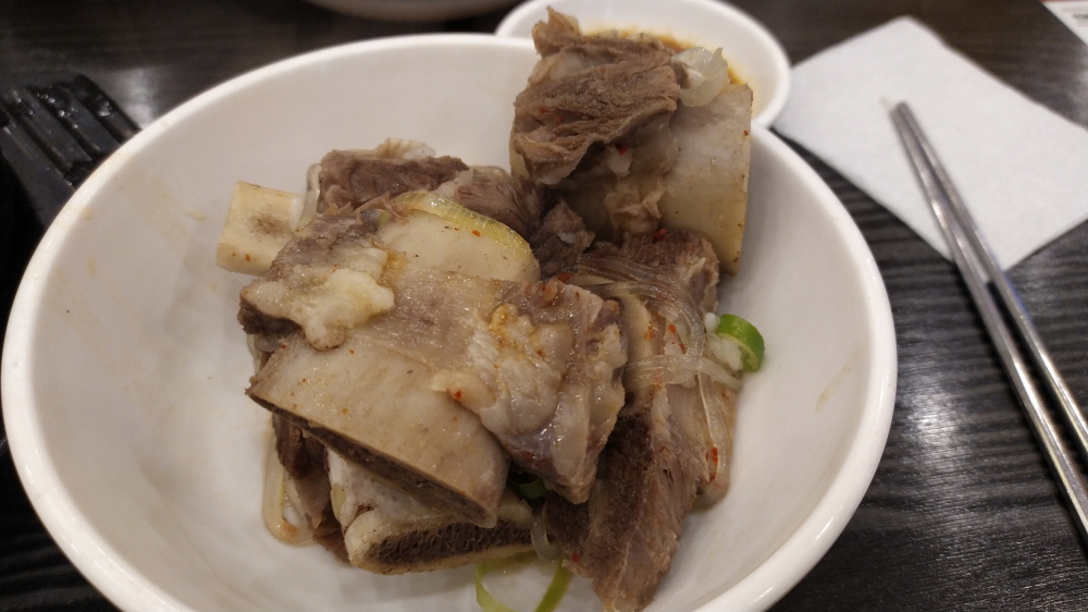 갈비탕에 들어간 갈비는 생각보다 많습니다. 약 6~7조각은 되는듯합니다. 얼큰한 육수에 밥을 말고 들어 둔 갈비는 한 조각씩 특별 소스에 찍어먹어 봅니다. 소스가 식욕을 당긴는듯 갈비가 부족한 느낌까지 들었지만 가성비만큼은 인정합니다.
