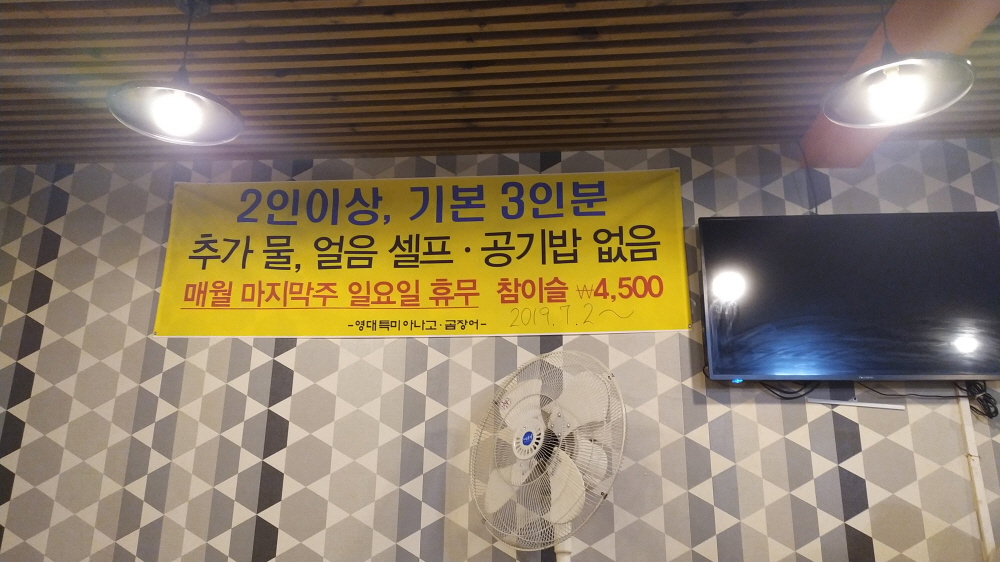 곰장어 1인분이 1만원이다. 싼 가격은 아니지만 곰장어 전문점이나 아나고맛집을 찾아다녀보아도 영대특미 아나고곰장어집 만큼 맛있는 곳은 아직까지 먹어보지 못했다. 입이 저가라서 그런지...