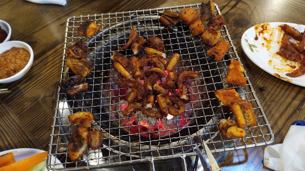 영대특미 아나고곰장어에선 항상 사장님이 곰장어 초벌을 해서 준다. 이유는 모르지만 아마도 손님들이 곰장어를 제대로 굽지 못해서가 아닐까? 생각한다. 양념 묻은 곰장어 굽기 쉽진 않다.