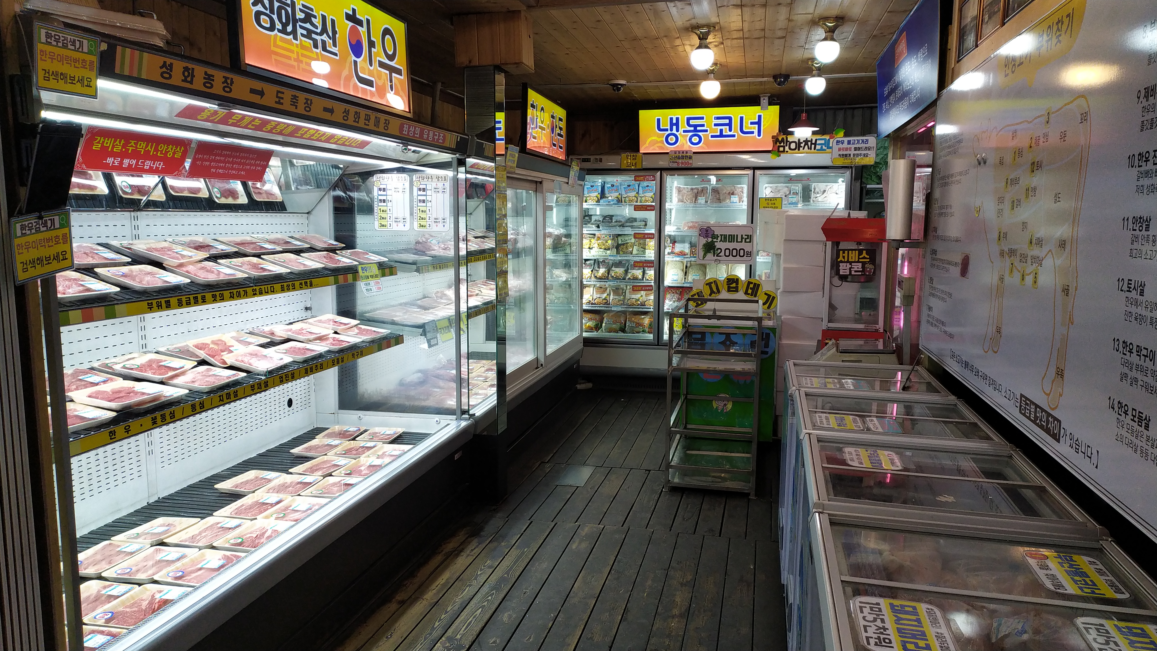 매장은 2곳으로 구분되며 한곳은 고기를 판매하는 곳, 그리고 한곳은 구입한 고기를 구워먹는 곳으로 구분됩니다.