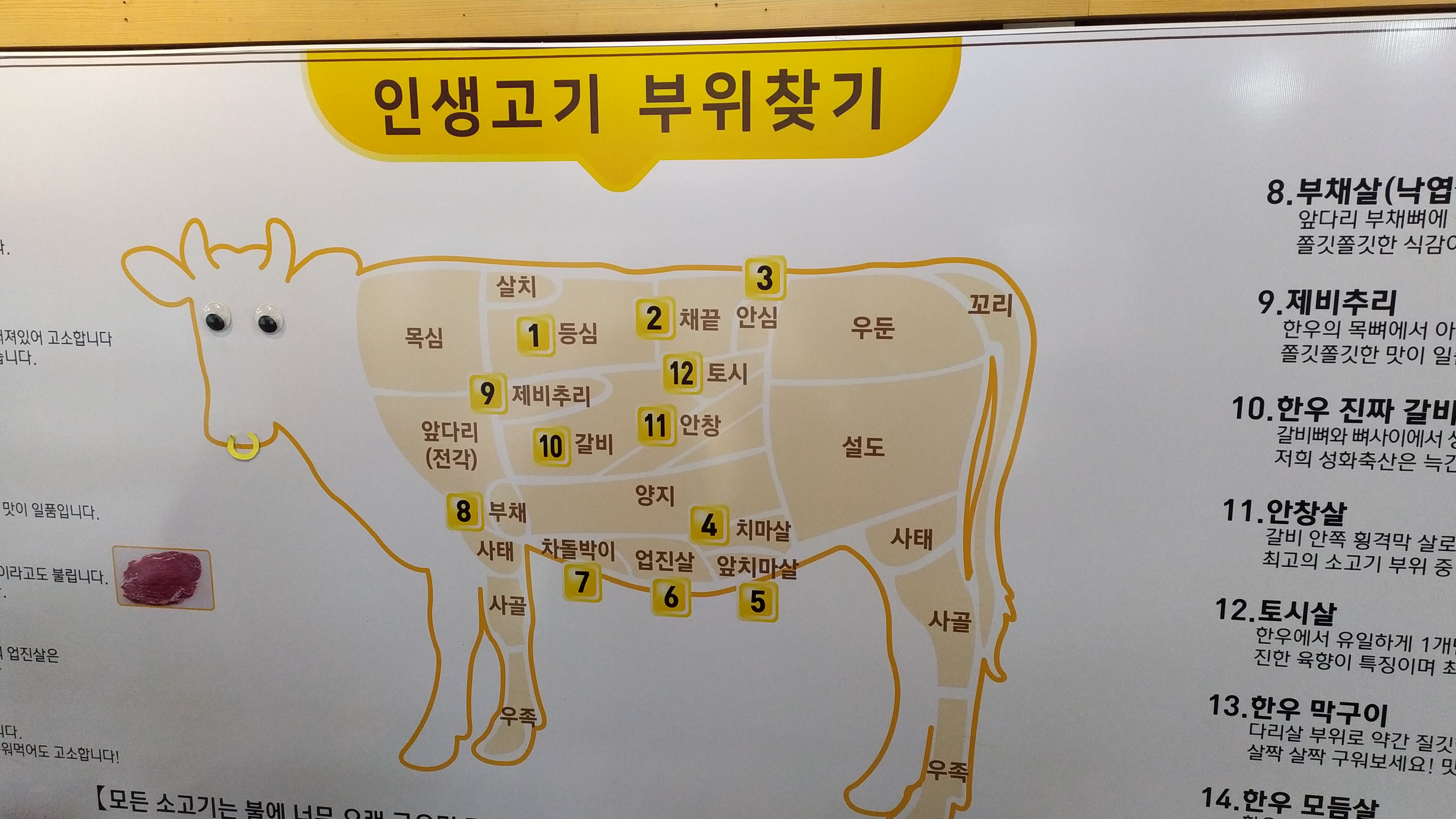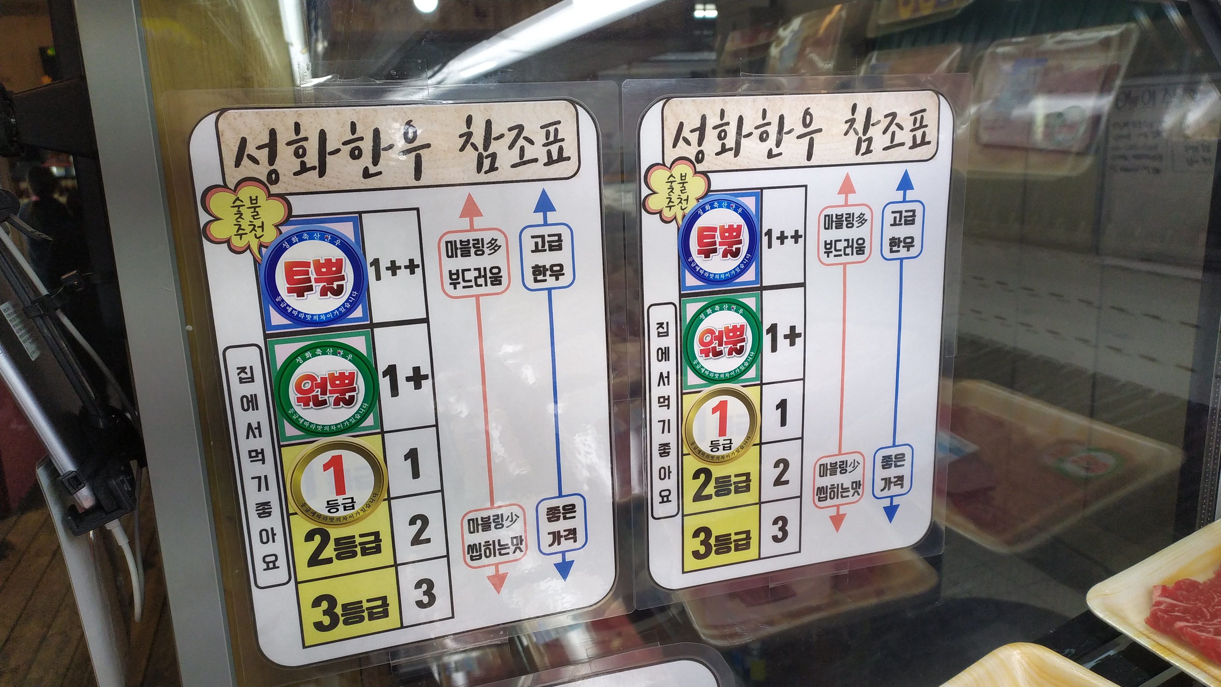 손님들을 위한 고기참조표도 알기쉽게 설명되어 있어 고기 선택시 결정장애를 해결해 줍니다.