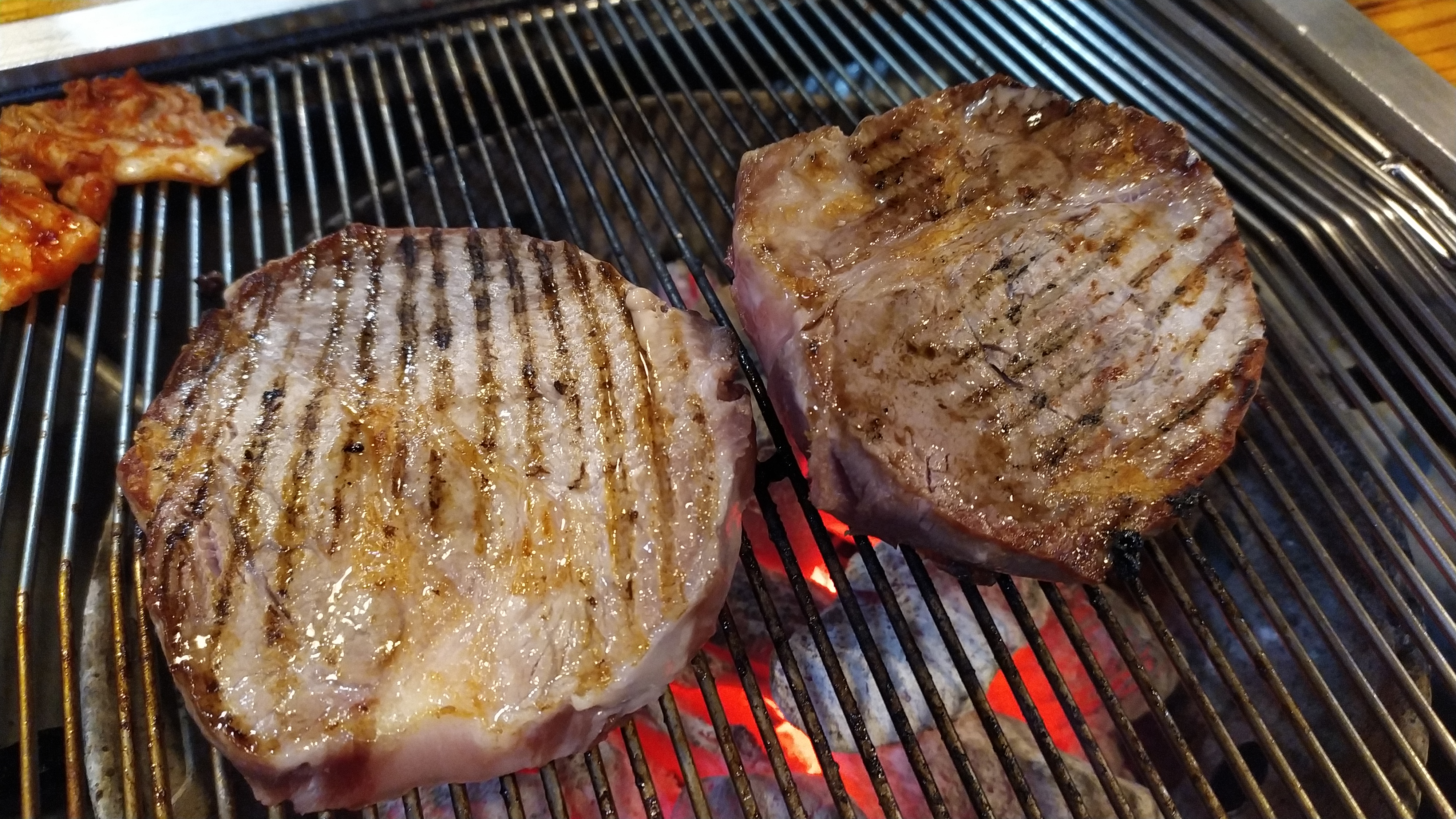 가격은 좀 더 올라가지만 에이징이 된 고기라고 하시고 맛이 확실히 다르다고 안내해주시니 먹어 볼 수 밖에 없더군요. 참고로 고기 두께가 장난아닙니다.