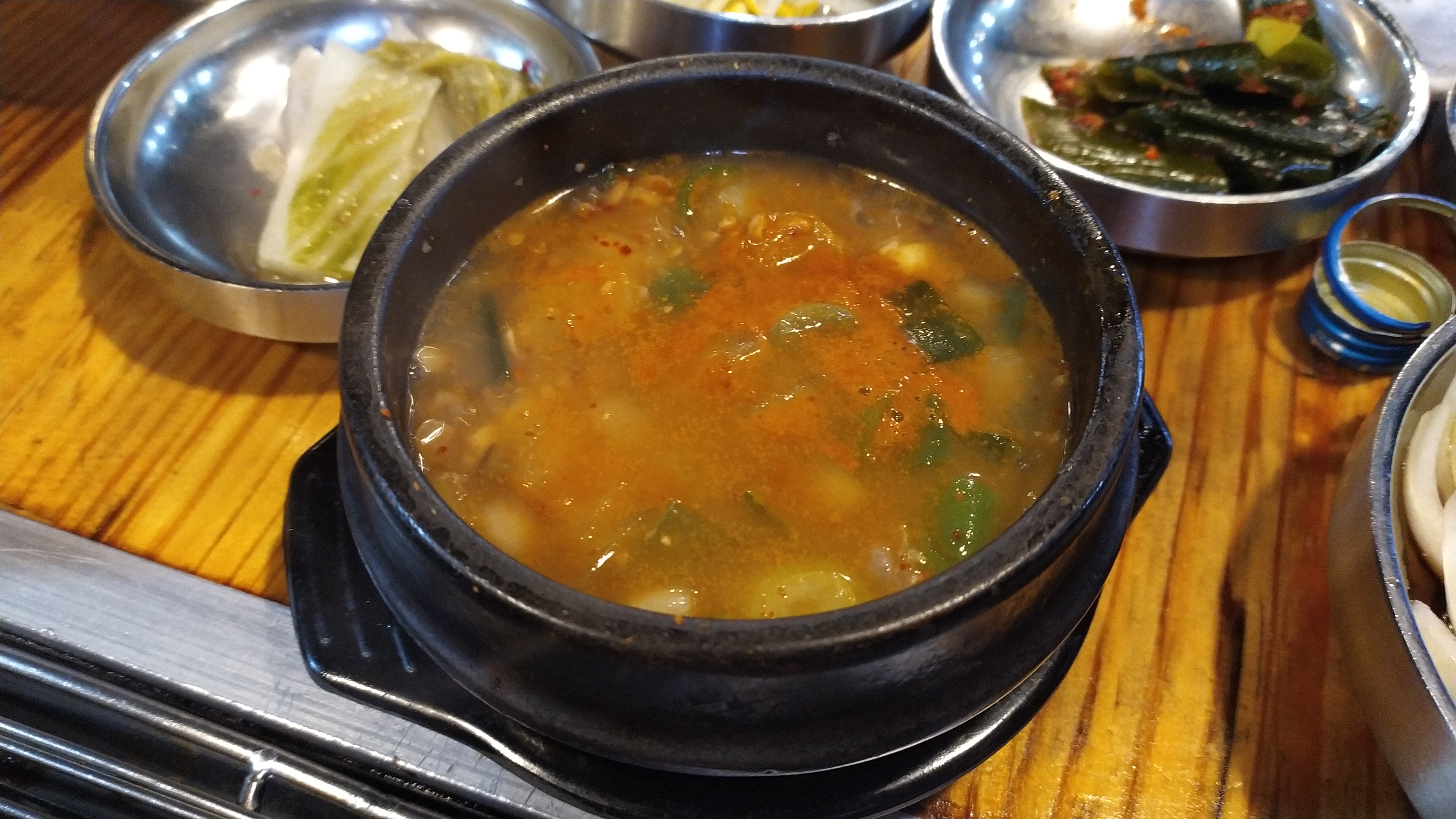 마지막으로 아이들 밥을 먹이기 위해 주문한 된장찌개, 먹어보지 못했지만 찌개 하나로 밥 3공기 먹었네요.