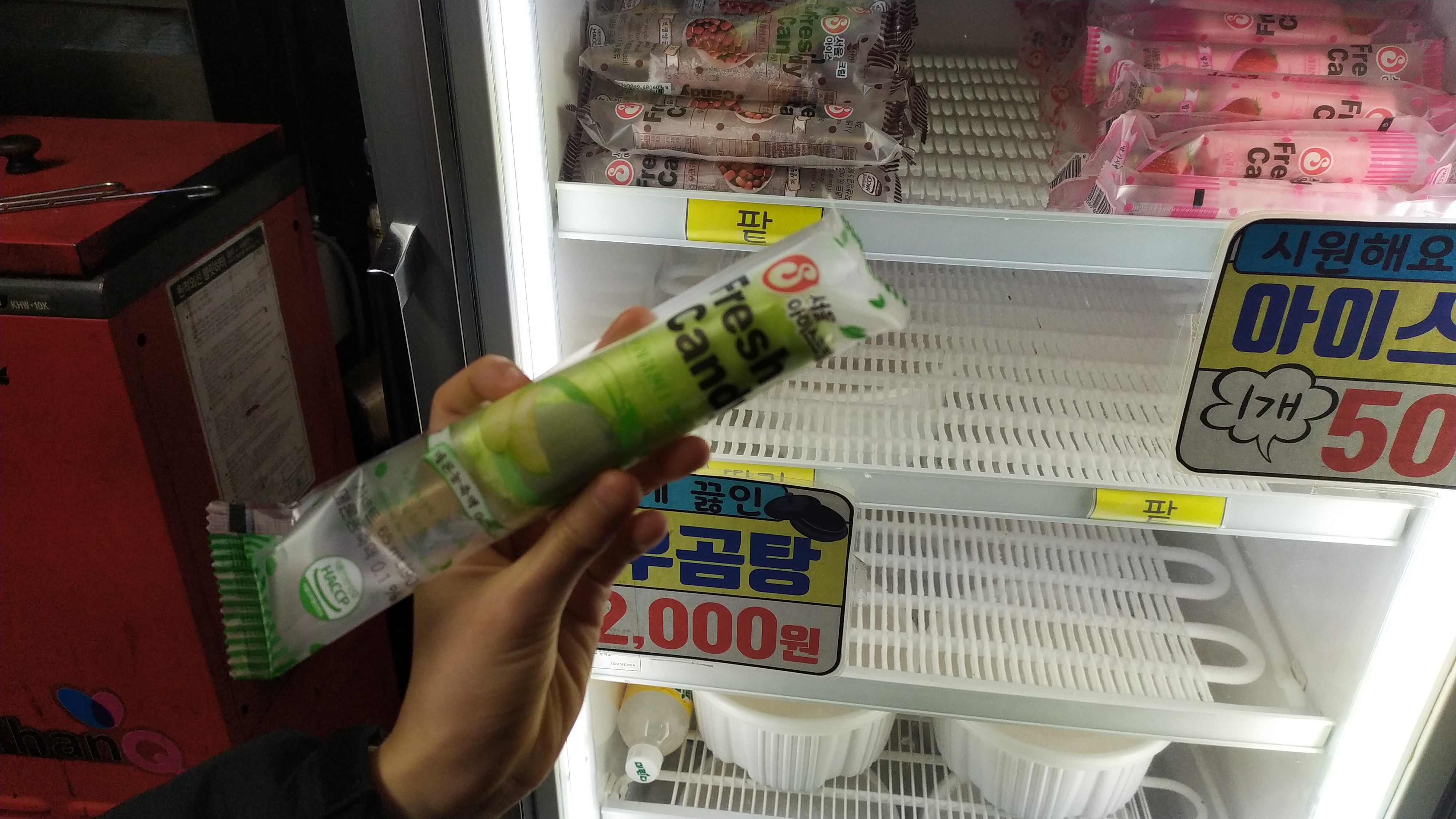 고기먹고 아이스크림 생각하는 아이들을 위해 카운터 옆 입구에 당당하게 저~ 찾으시나요? 하는 냉동고~ 아빠는 계산하고 아이들은 또 아이스크림 골라보네요.